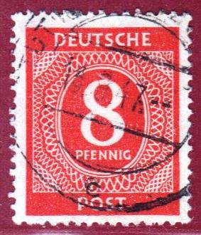 Die "Nähmaschinenzähnung" entstand, wenn zu viele Bögen auf einmal in die Zähnungsmaschine eingelegt wurden und durch stark abgenutzte Zähnungskämme. In einigen Auflagen aber auch durch die Lieferung von ungeeignetem, dickem und faserigem Papier. Die untersten Bögen im Stapel hatten dann die vorliegende Zähnung, bei der die Zahnlöcher nicht richtig ausgestanzt wurden und die fast den Eindruck erweckt, als wäre sie auf einer Nähmaschine erstellt worden. In aller Regel findet man diese Zähnungsvariante nur in den frühen Auflagen des Plattendrucks mit Hausauftragsnummern aus dem Jahre 1945 und 1946. Vermutlich waren der Zeitdruck und die Menge dieser Auflagen so hoch, das man einfach versuchte durch das Einlegen von mehr Bögen, Zeit zu sparen.
