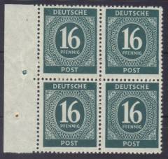 Die "Nähmaschinenzähnung" entstand, wenn zu viele Bögen auf einmal in die Zähnungsmaschine eingelegt wurden und durch stark abgenutzte Zähnungskämme. In einigen Auflagen aber auch durch die Lieferung von ungeeignetem, dickem und faserigem Papier.  Die untersten Bögen im Stapel hatten dann die vorliegende Zähnung, bei der die Zahnlöcher nicht richtig ausgestanzt wurden und die fast den Eindruck erweckt, als wäre sie auf einer Nähmaschine erstellt worden. In aller Regel findet man diese Zähnungsvariante nur in den frühen Auflagen des Plattendrucks mit Hausauftragsnummern aus dem Jahre 1945 und 1946. Vermutlich waren der Zeitdruck und die Menge dieser Auflagen so hoch, das man einfach versuchte durch das Einlegen von mehr Bögen, Zeit zu sparen.