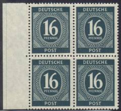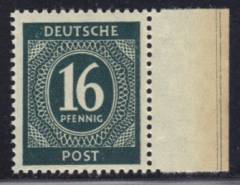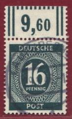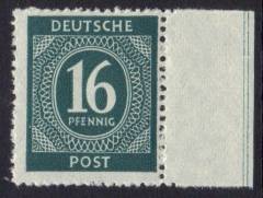 Mit Plattenfehler auf Feld 16 "Spitze der Werziffer 6 oben verdickt" der nur in der Teilauflage der Bögen mit HAN 4038.46-2 in Type III mit punktierter Bogentrennline vorkommt. Zusätzlich mit weit nach links verschobenem Oberrandzähler.