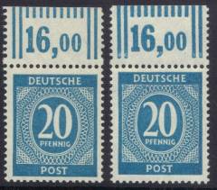 Bei der Nr. 924 ist der Normalfall, das alle Ober- und Unterränder eines Walzenbogens schlanke Striche und Zahlen zeigen. In einer Teilauflage kommt es aber vor, das nur in Reihe 6 - 10 kleinere, fette Zähler und Striche in die Druckplatte eingebaut wurden.