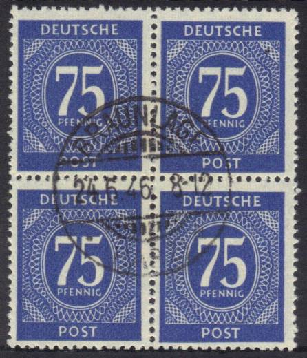 Aus Sammlung Kontrollrat Viererblöcke gut gestempelt, nicht vorgefaltet oder angetrennt.