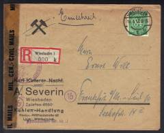 Seltenes Einschreiben mit Nummerator-Abschlag + Tagesdatum + Buchstabe für Monat, zur Zählung der der Zensurstelle zugeführten Einschreibebriefe. Dieser Stempel wurde nicht auf jeder Einschreibesendung, sondern nur auf dem obersten Brief größerer Einheiten (Bündel, Beutel) abgeschlagen. Er gibt neben der Stückzahl (links) mit der nächsten Zahlengruppe den genauen Tag und mit dem Buchstaben den Monat an, an welchem dieses Bündel der Zensurstelle übergeben wurde. Alle solche Einschreiben tragen zusätzlich einen Tagestempel des Postamtes 2 von Frankfurt /Main, welcher das Datum anzeigt an dem die Sendung wieder in den Postleitweg eingeschleust wurde. Solche Stücke erlauben eine genaue Angabe der zeitlichen Abläufe, von der Aufgabe über die Zensur und die Wiedereinleitung bis zur Ankunft.