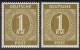 Hierbei erscheinen die eigentlich farblosen Teile der Marke, also hauptsächlich die Ziffer 1 und die Markenränder, um etwa eine halbe Markenbreite nach links versetzt noch einmal als dunkler Schattendruck. Ganz selten einmal erkennt man auch Teile von DEUTSCHE, POST und RM. Das kommt selten vor, auch weil sich beide Drucke teils überlagern.