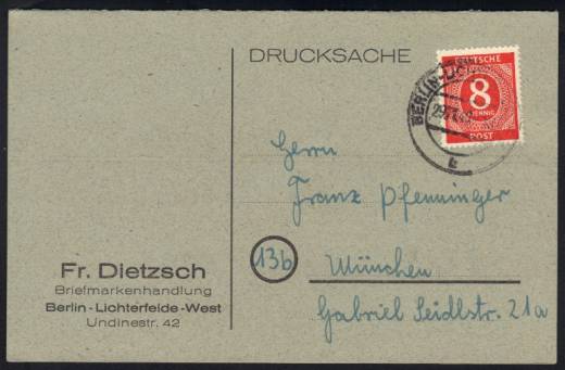 An den bekannten Philatelisten und frühen Briefmarkenprüfer Pfenninger. Farbe geprüft Bernhöft.