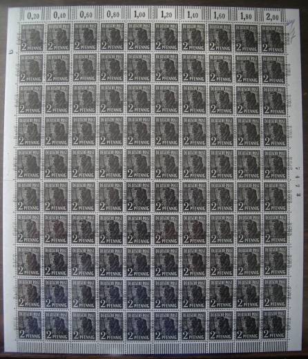Einwandfreier Bogen, üblich in der Mitte waagerecht gefaltet, nur zwischen Reihe 3 und 4 oben angetrennt.