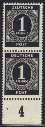 Mit seltenem Plattenfehler von Feld 84 einer Teilauflage "Zierlinien unter C von DEUTSCHE retuschiert und verdickt.".
