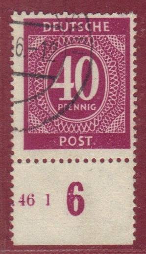 Zusätzlich mit seltenerem Unterrandplattenfehler "Kopf des Reihenzählers 6 oben eingedellt" von Feld 96 einer Teilauflage!