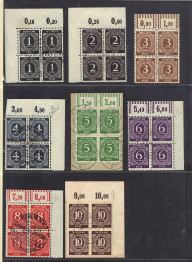 Eine Qualitätssammlung Oberrand-Viererblöcke meist vom Eckrand, nicht vorgefaltet oder angetrennt und vielfach mit vollem Originalgummi!