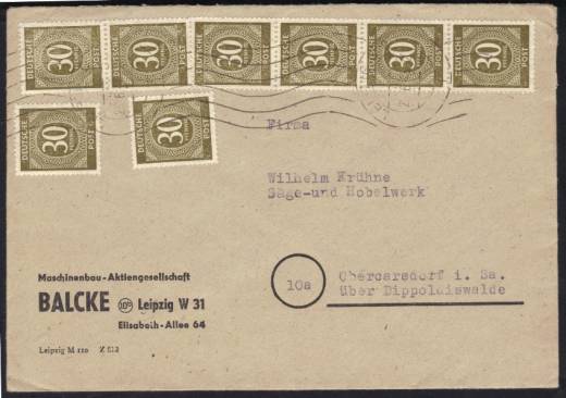 928a MeF(8) 10-fach Ost Firmenfernbrief LEIPZIG 25.6.48