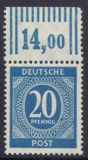 Bei der Nr. 924 ist der Normalfall, das alle Ober- und Unterränder eines Walzenbogens fette Striche und Zahlen zeigen. In einer Teilauflage kommt es aber vor, das nur auf der rechten Bogenhälfte kleine, schmale Zähler und Striche in die Druckplatte eingebaut wurden. Links sind wie gewohnt große, fette Zähler und Striche.