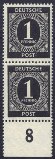Mit Plattenfehler von Feld 98 einer Teilauflage "Kopf des P von PFENNIG oben links gebrochen.".