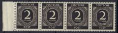 Mit Plattenfehler II von Feld 63 "Dünne Wertziffer 2 durch Retusche.". Kleine Haftstelle im Gummi der linken oberen Marke.