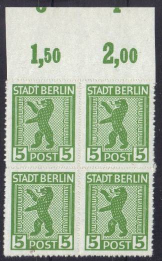Seltener Bogenverschnitt der Bärenausgabe mit Teilen der Unterrandzähler des darüberliegenden Bogens im Oberrand.