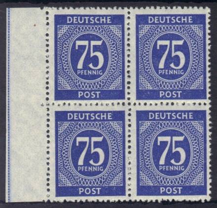 Die "Nähmaschinenzähnung" entstand, wenn zu viele Bögen auf einmal in die Zähnungsmaschine eingelegt wurden und durch stark abgenutzte Zähnungskämme. In einigen Auflagen aber auch durch die Lieferung von ungeeignetem, dickem und faserigem Papier. Die untersten Bögen im Stapel hatten dann die vorliegende Zähnung, bei der die Zahnlöcher nicht richtig ausgestanzt wurden und die fast den Eindruck erweckt, als wäre sie auf einer Nähmaschine erstellt worden. In aller Regel findet man diese Zähnungsvariante nur in den frühen Auflagen des Plattendrucks mit Hausauftragsnummern aus dem Jahre 1945 und 1946. Vermutlich waren der Zeitdruck und die Menge dieser Auflagen so hoch, das man einfach versuchte durch das Einlegen von mehr Bögen, Zeit zu sparen.
